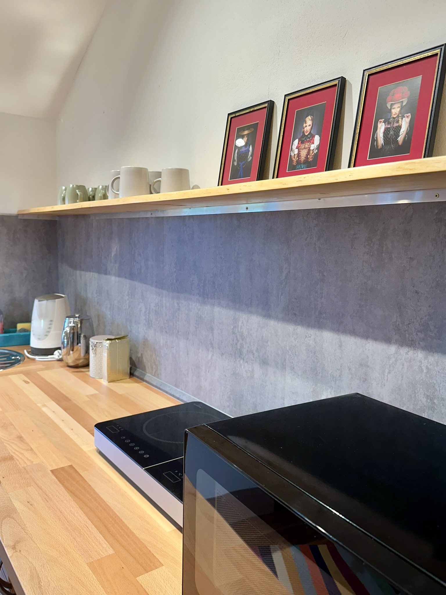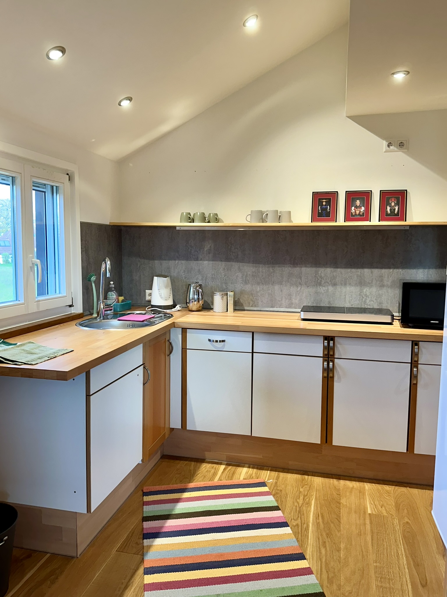 Unsere kompakte Küchenzeile ist perfekt für die Zubereitung kleiner, leckerer Mahlzeiten. Sie bietet alles, was Sie für ein gemütliches Frühstück, einen schnellen Mittagssnack oder ein leichtes Abendessen brauchen. Mit der Doppel-Induktionsherdplatte können Sie problemlos einfache Gerichte zaubern. Bitte beachten Sie: Die Küche ist nicht für aufwendige Menüs oder große Kochaktionen ausgelegt.